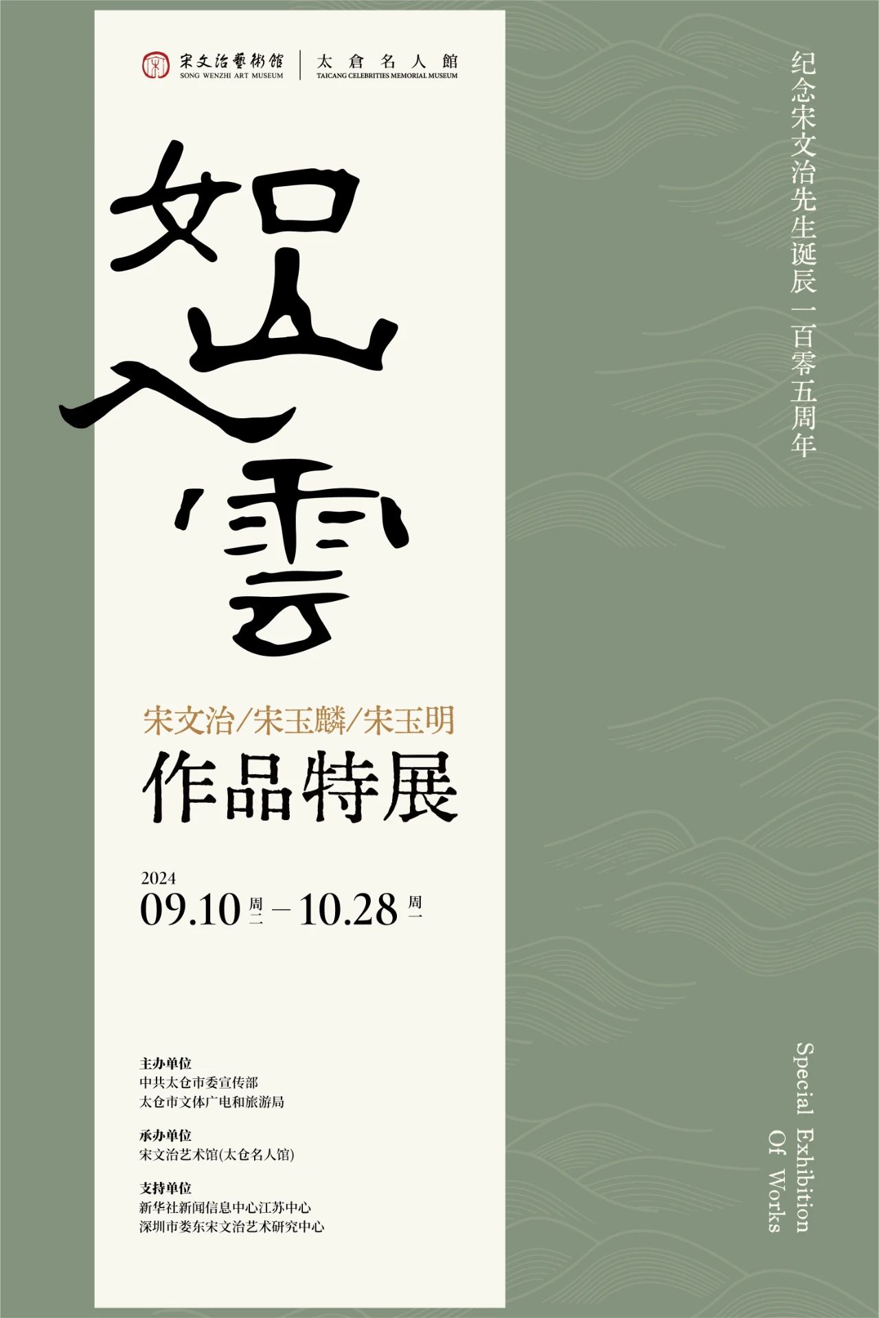 本次展览以“如山入云”为题,取父爱如山,高耸入云之意。展览以亲情为纽带,将宋文治先生父子三人的作品共同展出,诠释了两代人间的艺术传承。展览共展出作品78件,其中宋文治先生山水画作品32件,内容涵盖宋文治先生各时期的代表作,有早年他跟随张石园、吴湖帆学习清“四王”的拟古之作,以及上世纪60~70年代体现社会主义建设成就的主题性创作,包括先生晚年变法的泼彩佳作。旨在彰显其在不同年代、不同题材的创作成就,力求全方位展示宋文治先生的艺术面貌。展览同时展出宋玉麟先生、宋玉明先生的绘画作品46件,展现他们在继承父亲宋文治先生的艺术观念,在艺术道路上的不同取舍与侧重。